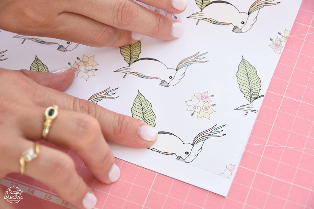 אני השתמשתי בשבלונת העלים הטרופיים שלנו, וגזרתי ממנה עלה אחד שמצא חן בעיני בעזרת סכין יפנית. גזרו את העלה בעדינות ובזהירות. בחלק השחור של העלה לא נשתמש – אנחנו בעצם צריכות את הנגטיב שלו.